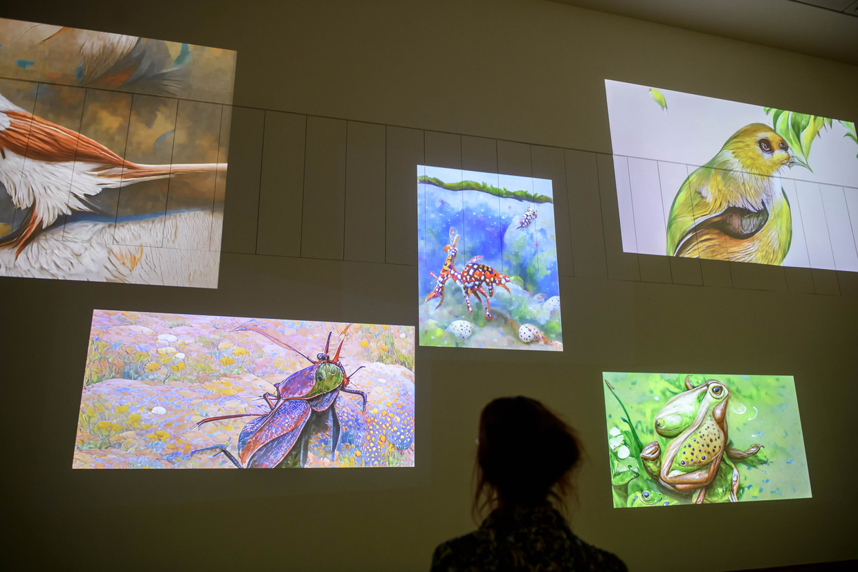 For the exhibition’s opening, we assembled a two-hour DJ set featuring synthesised environmental sounds, soft melodic sequences, and selected, manipulated field recordings to create a vibrant post-natural soundscape teeming with life. As the room filled with this vivid soundscape, animated portraits of imagined species in Entangled Others’ Critically Extant enveloped visitors in a remarkable experience. This audiovisual synergy not only captivated the senses but also highlighted the stark disparity in the statistical representation of endangered species in underdeveloped or under-quantified regions across our planet. Wonderbaarlijke Wezens (Wonderful Creatures) at Kunsthal KADE, Amersfoort, in June 2023.